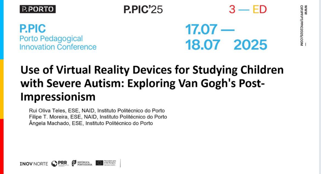 Em julho de 2025 Rui Oliva Teles e Ângela Machado apresentaram, no P.PIC’25, o trabalho “Use of VR devices for studying children with severe Autism: exploring Van Gogh’s post-impressionism“.