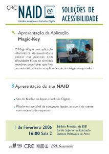 - Apresentação pública do Magic Key dispositivo de acesso ao computador para pessoas com incapacidade motora levada a cabo pelo Eng Luís Figueiredo da Escola Superior de Tecnologia do Instituto Politécnico da Guarda, autor do projecto; (01.02.2006 – 16horas).